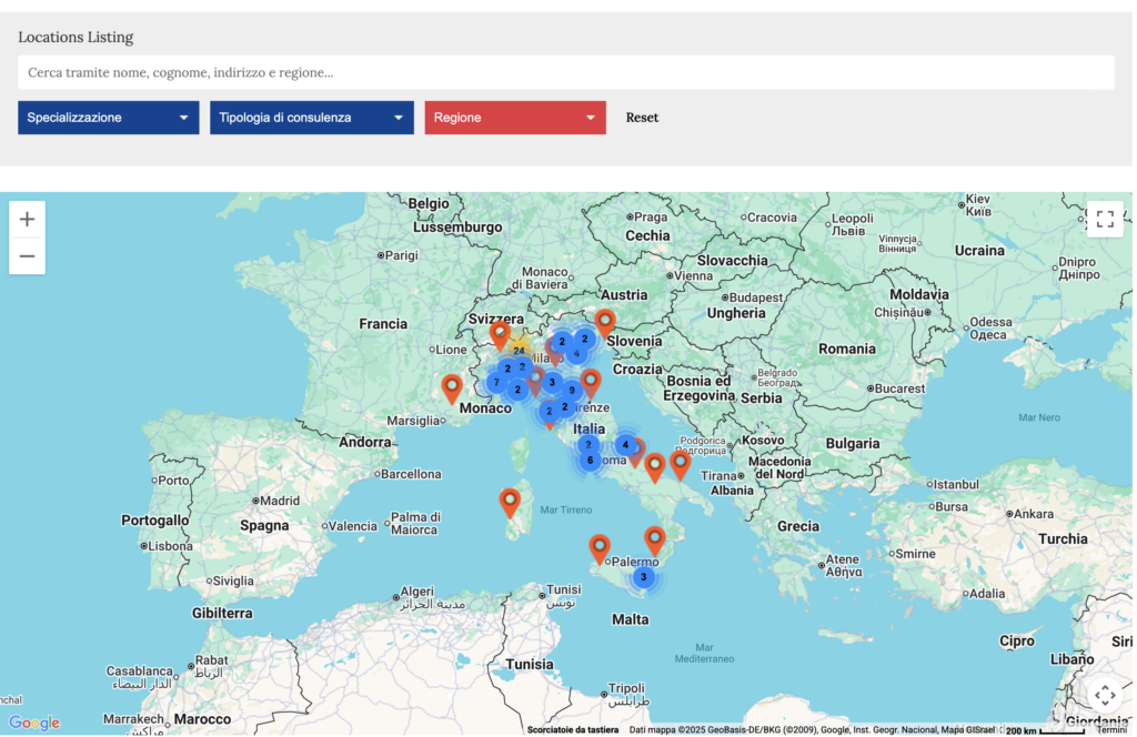 Per gli abbonati al Journal c’è la possibilità di inserirsi nella mappa ed essere visibile nella città dove lavori, con un breve profilo professionale, indicare le tue eventuali specializzazioni e modalità di erogazione della consulenza che offri.